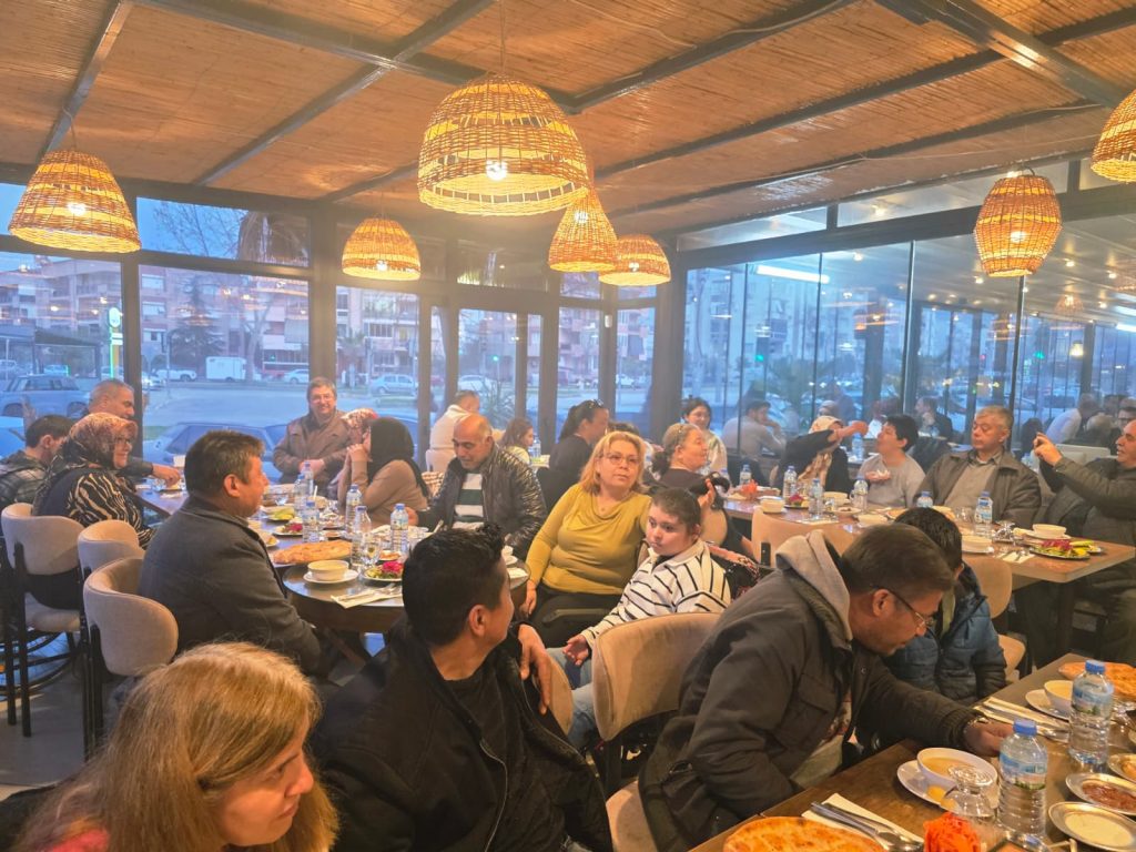İftar programı, Tire’nin sevilen mekânlarından Ödemiş Kebap’ta gerçekleştirildi. Yoğun katılımın olduğu etkinlikte engelli bireyler ve aileleri aynı sofrada buluşarak Ramazan’ın birlik ve beraberlik ruhunu paylaştı.