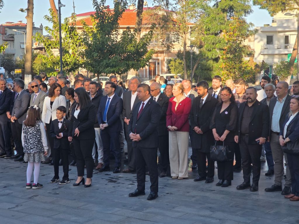 Tire’de 24 Kasım Öğretmenler Günü kapsamında çelenk koyma töreni Cumhuriyet Meydanı’nda gerçekleştirildi. Törene ilçe protokolü, okul müdürleri, öğretmenler ve öğrenciler katıldı.