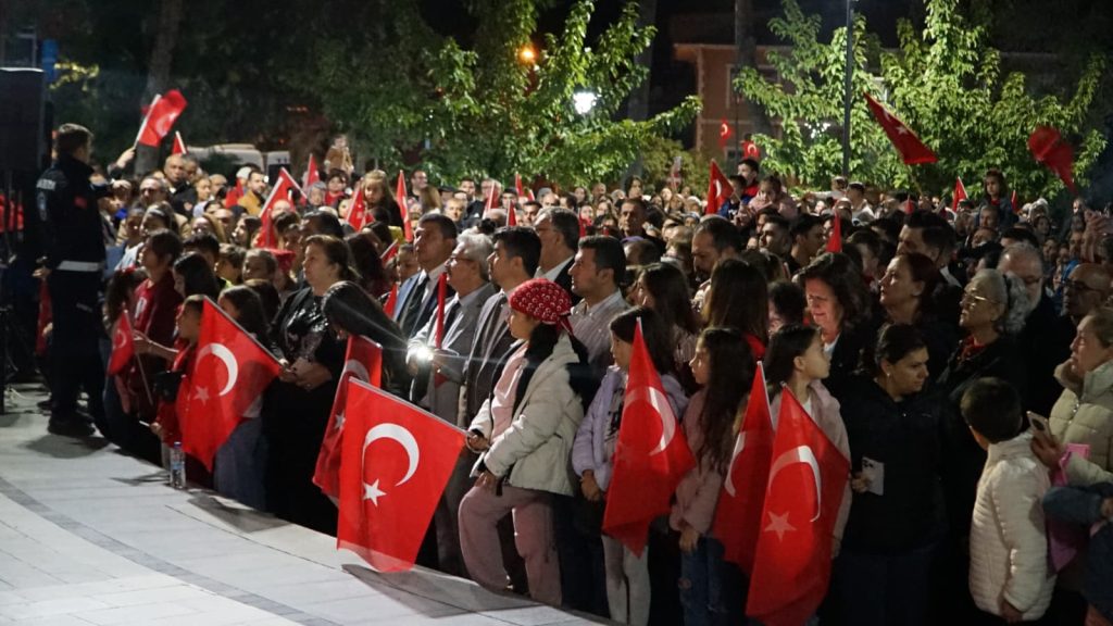 Cumhuriyet coşkusunun doruğa çıktığı gecede, genç yaşlı herkes Türk bayraklarıyla birlikte marşlar söyleyerek birlik ve beraberlik mesajı verdi. Tire sokaklarında yankılanan bu coşku, Cumhuriyet’in 102. yılında da hiç eksilmeden sürdü.